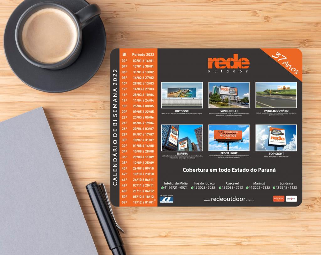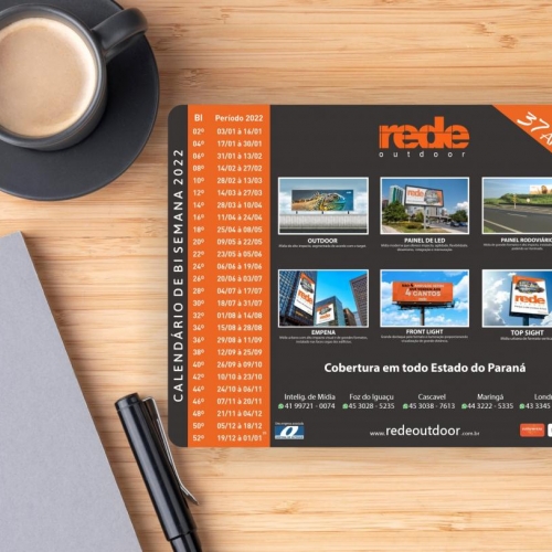 É através dessa programação que estipulamos e planejamos nossas campanhas. Na imagem podemos ver nosso mousepad com a programação, que há anos fazemos e deixamos nas visitas para os clientes.